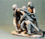2009Ik heb hier het proces uitgebeeld dat iemand door kan maken als hem grote ellende overkomt. Van teneergeslagen, via voorzichtig weer opkrabbelen, tot uiteindelijk er weer staan.